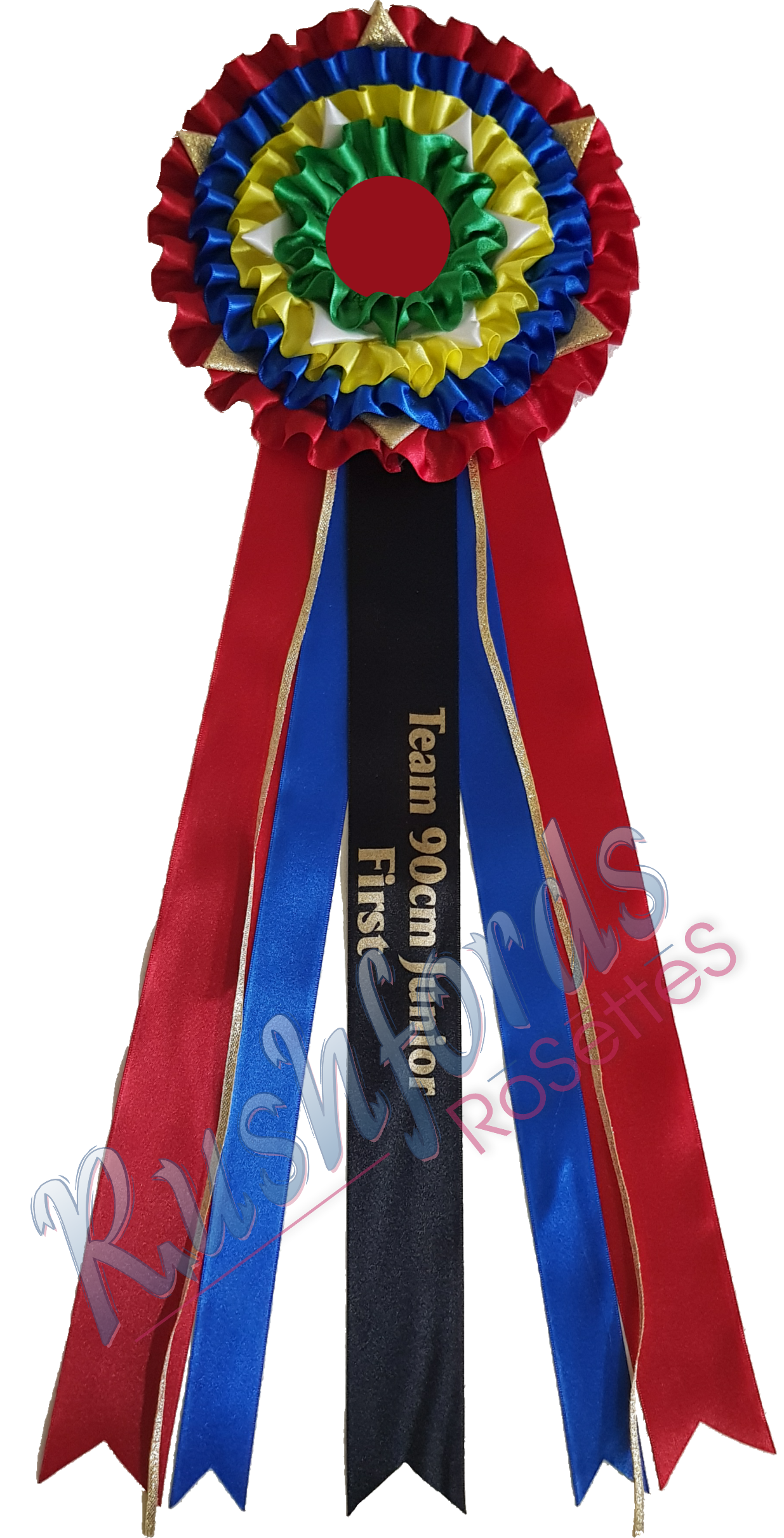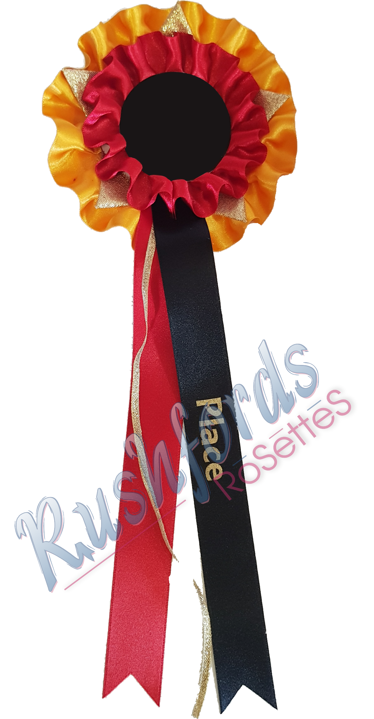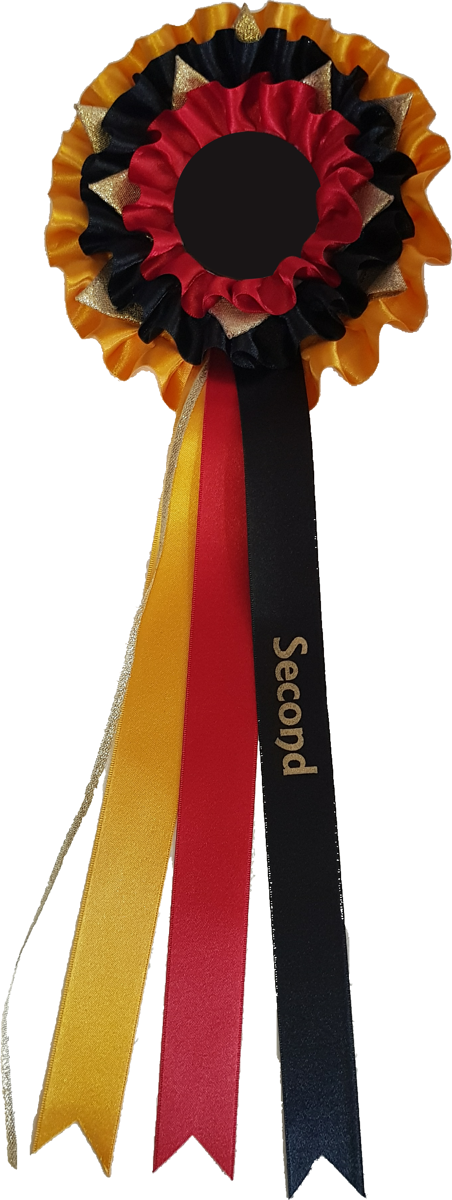 All our rosettes are man-made using top quality 100% satin Ribbons and are available in our entire range of ribbon colours, widths and combinations to ensure that your specific rosette desires can be fully satisfied. Colours shown are for guidance purposes only, we are happy to arrange for samples on request.