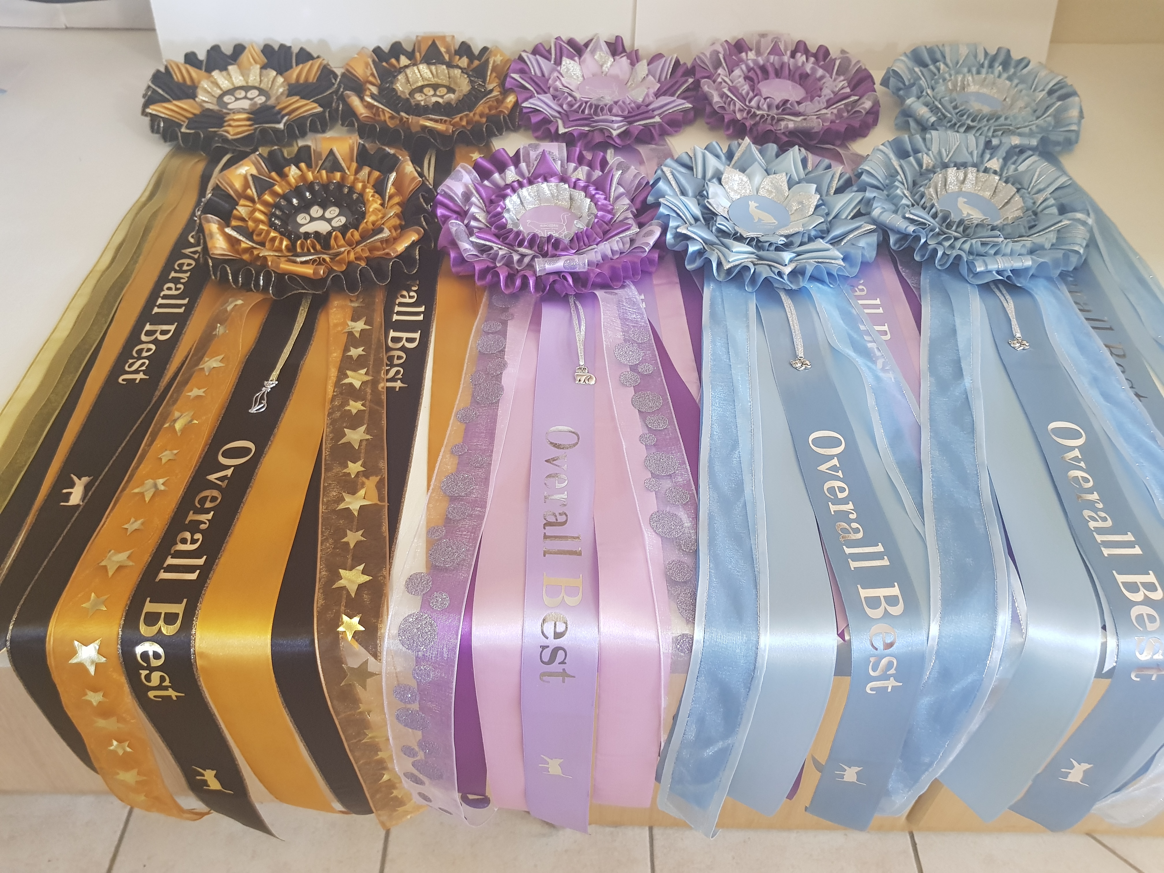 Manufacturer of Rosettes, Sashes and print ribbons for any occasion, Rushfords Rosettes uses only the best quality satin ribbon to create stunning rosette awards for sports events, animal shows such as dogs, cats, horses, etc. Rushfords Rosettes welcomes all enquiries and will attempt to assist with all requests.