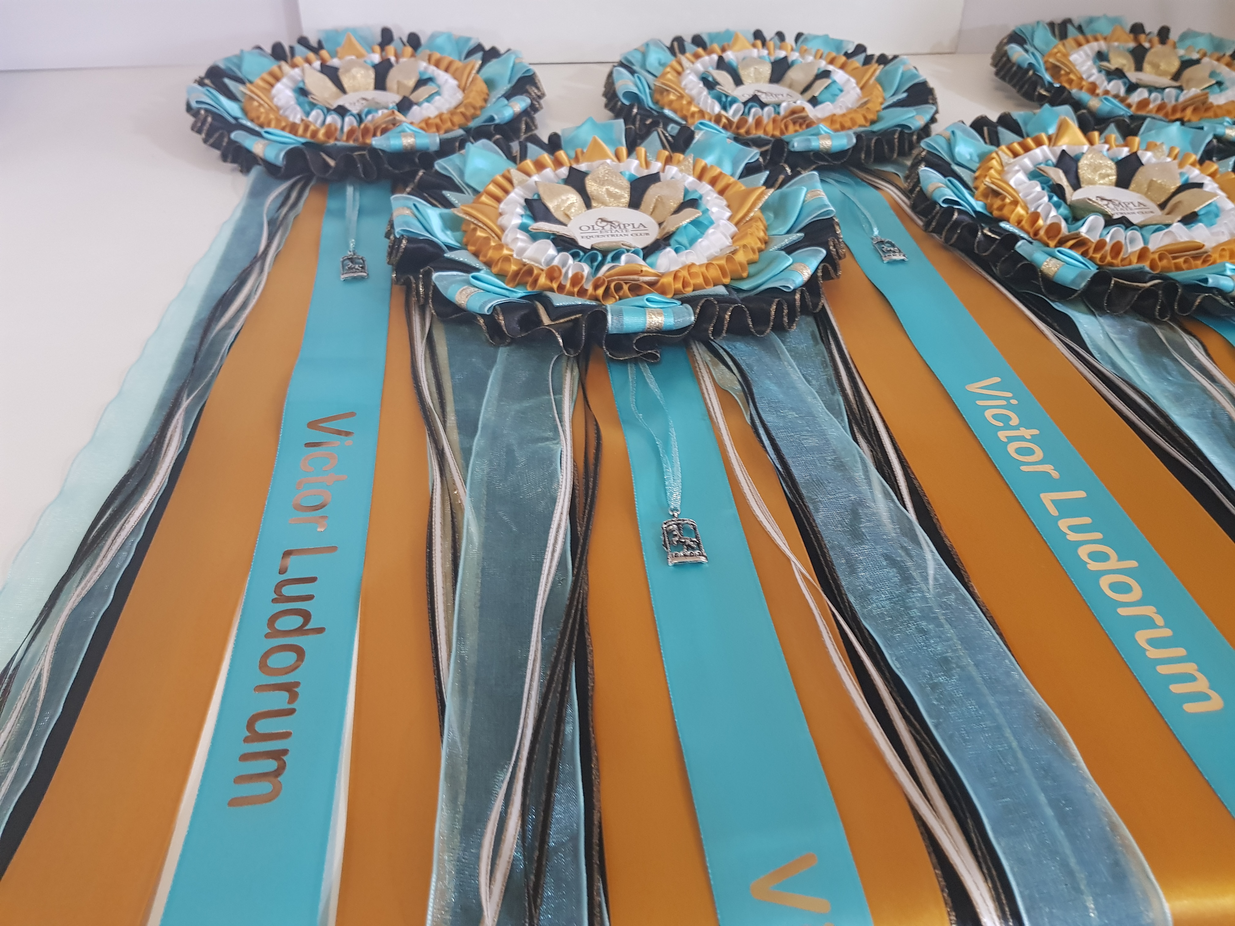 We create our rosettes using only the best satin ribbon and pleated with our new modern pleating machine and/or printed, as appropriate.